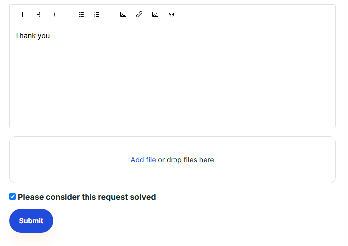 After the issue is resolved, the ticket can be closed by a Support Team member or by you.