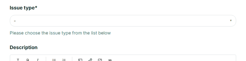 Fill in the Subject field with a brief description of the issue. Choose the Issue type from the dropdown menu, and provide detailed information in the Description field. - Attach Files (Optional):