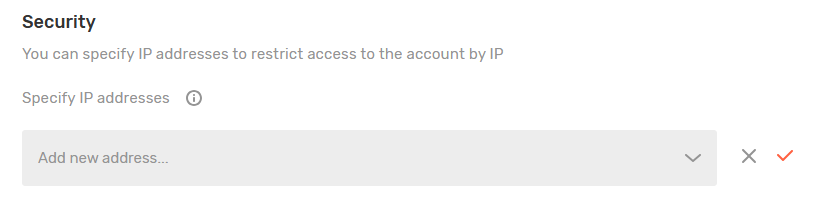 In the Settings, enter the IP addresses you want to whitelist for accessing your account. Click Save to apply the settings.