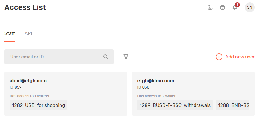 - Select a user and assign a role (Read-only, Admin, Withdrawals with approval).