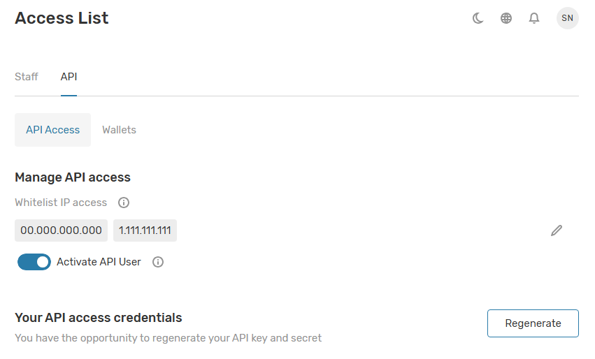 - Generate new API keys and manage existing ones.